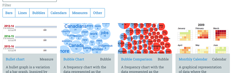 A collection of charts that are quick to deploy and use csv files for the data. The idea was to give our reporters a quick and easy way to visualize data.