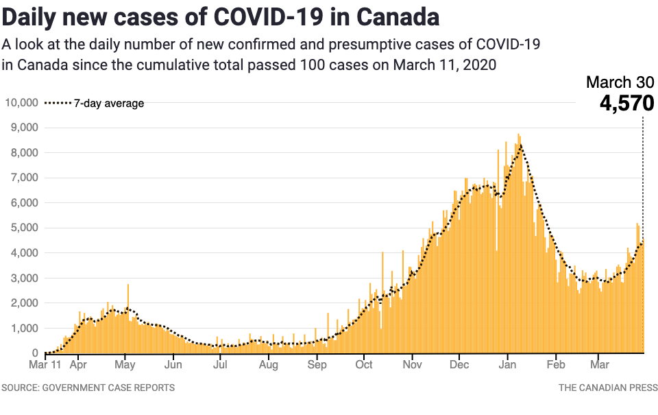 (Note: The data source is no longer being maintained by The Canadian Press but the map is still visible without data)