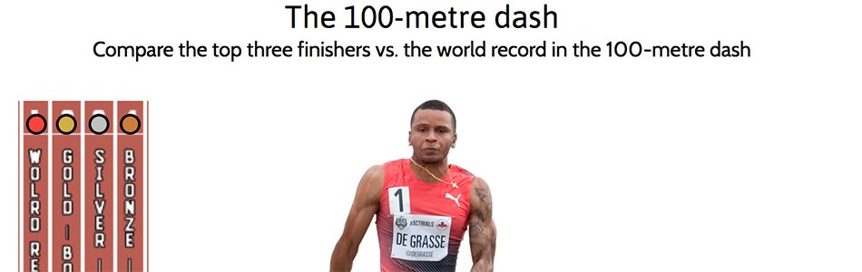 Comparing the 2016 Olympics 100m gold medal race results to the world record. No longer being maintained by The Canadian Press.