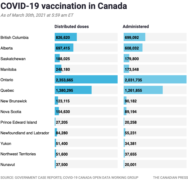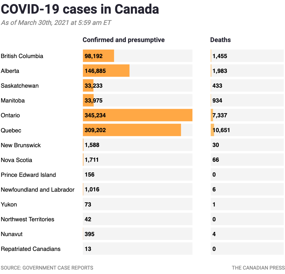 (Note: The data source is no longer being maintained by The Canadian Press but the map is still visible without data)